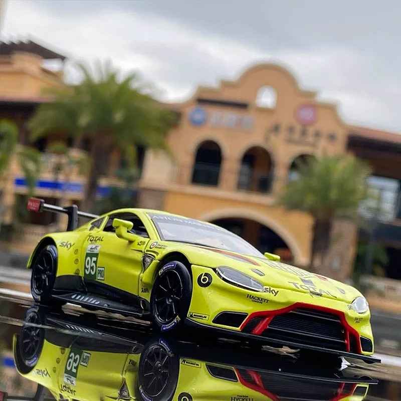 Designed to replicate the iconic Aston Martin GTE race car, this 1:32 scale metal model vehicle features authentic styling, smooth rolling wheels, and a premium painted finish. Whether used as a toy for imaginative play, a display piece for collectors, or a gift for birthdays and special occasions, this diecast racing car delivers excitement and value.