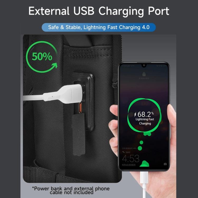 6. External USB Charging Port – Compatible with personal power banks and charging cables.