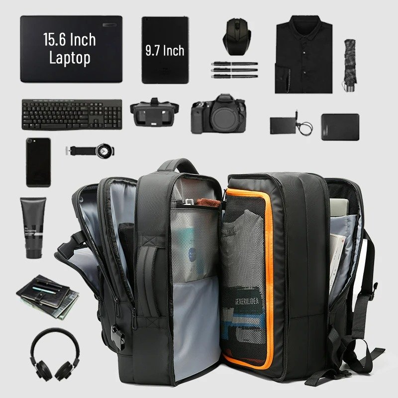 This backpack is perfect for men seeking a high-capacity, waterproof, and expandable business travel bag that combines style with functionality.