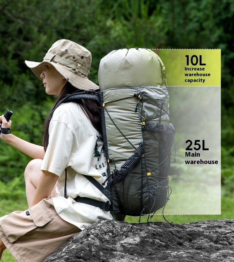The BISINNA Camping Backpack 25+10L is a lightweight and durable outdoor backpack designed for hiking, trekking, climbing, travel, and camping adventures. Its expandable 35L capacity provides ample space for gear, clothing, food, and accessories while remaining comfortable for long outdoor use.