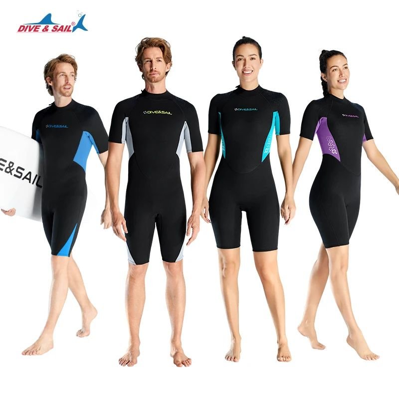 Experience warmth, flexibility, and underwater comfort with the DIVE&SAIL 3mm Neoprene One-Piece Wetsuit, designed for swimming, snorkeling, scuba diving, surfing, and water sports. Made from premium 3mm neoprene material, this insulated short sleeve short-leg wetsuit provides excellent thermal protection while maintaining full mobility.