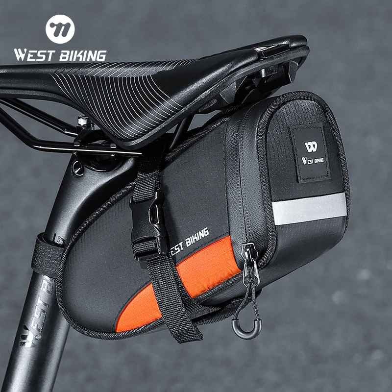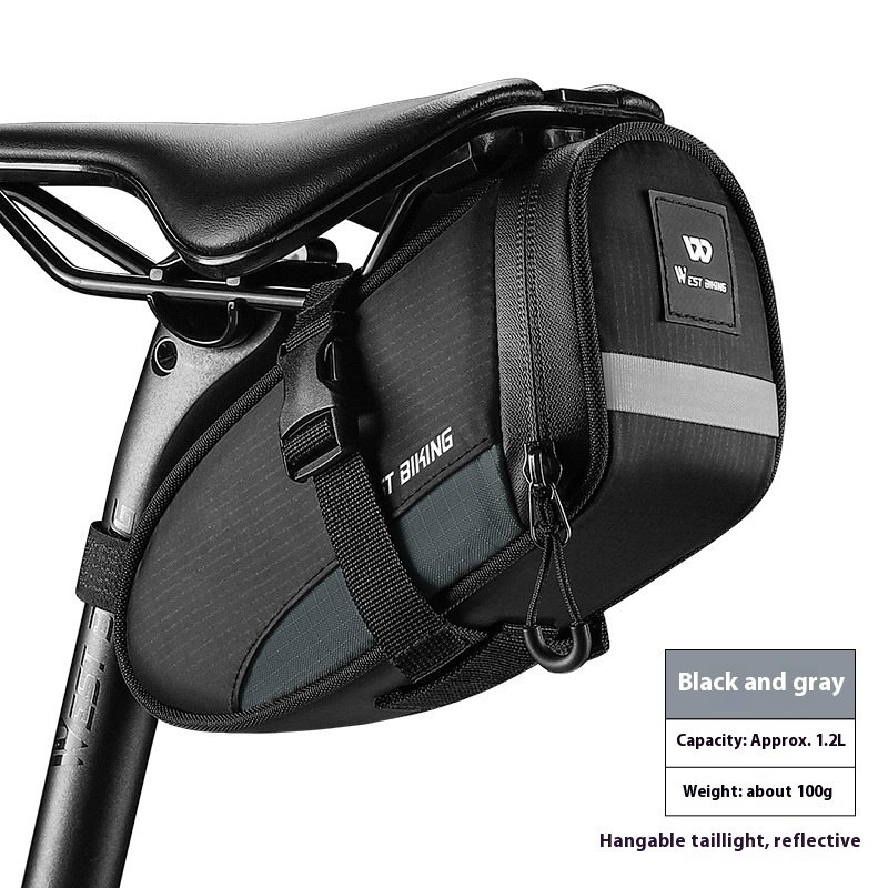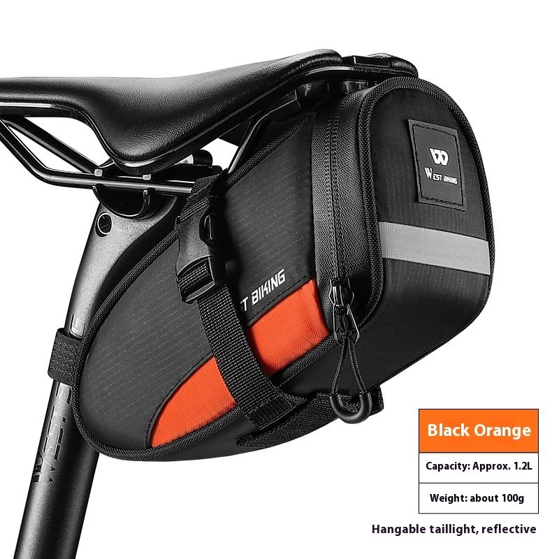 Keep your cycling essentials safe and organized with the WEST BIKING Bicycle Saddle Bag, a compact and durable rear under-seat tool bag designed for MTB and road bicycles. Built with water-repellent material and enhanced reflective detailing, this saddle bag improves both storage convenience and night-time visibility for safer rides.